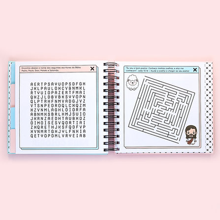 - 19 páginas de atividades, entre desenho livre, colorir, caça-palavras, cruzadinha, e outros.